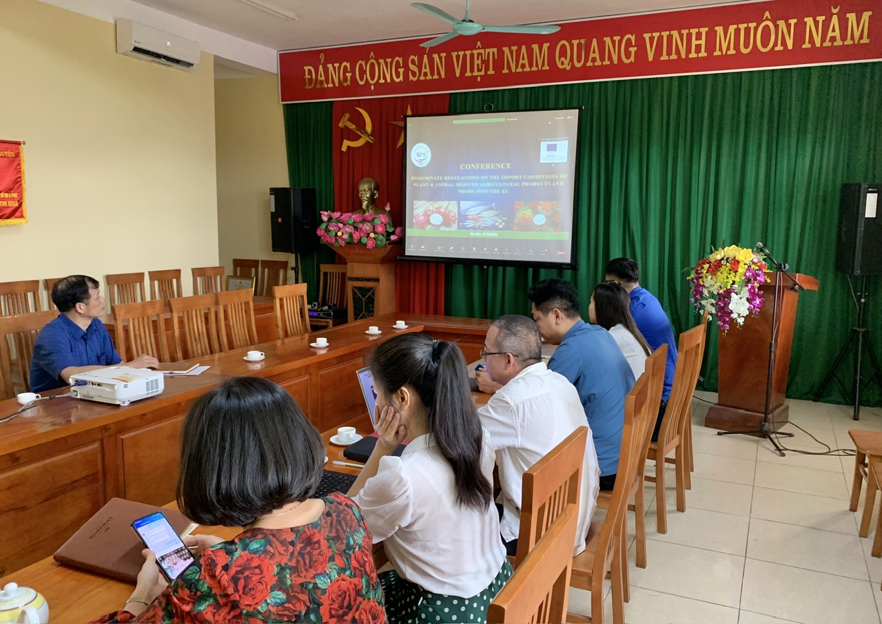 Ngày 07/5/2024, Văn phòng SPS Việt Nam, Bộ Nông nghiệp và PTNT phối hợp với Tổng cục An toàn sức khỏe và An toàn thực phẩm (DG-SANTE)của Liên minh châu Âu (EU) tổ chức Hội nghị trực tuyến “Phổ biến các quy định nhập khẩu nông sản thực phẩm nguồn gốc động thực vật vào thị trường EU”. Được sự chỉ đạo của Sở Nông nghiệp và PTNT, Chi cục QLCL Nông lâm sản và Thủy sản đã tổ chức điểm cầu kết nối Diễn đàn trực tuyến tại tỉnh Thái Nguyên.